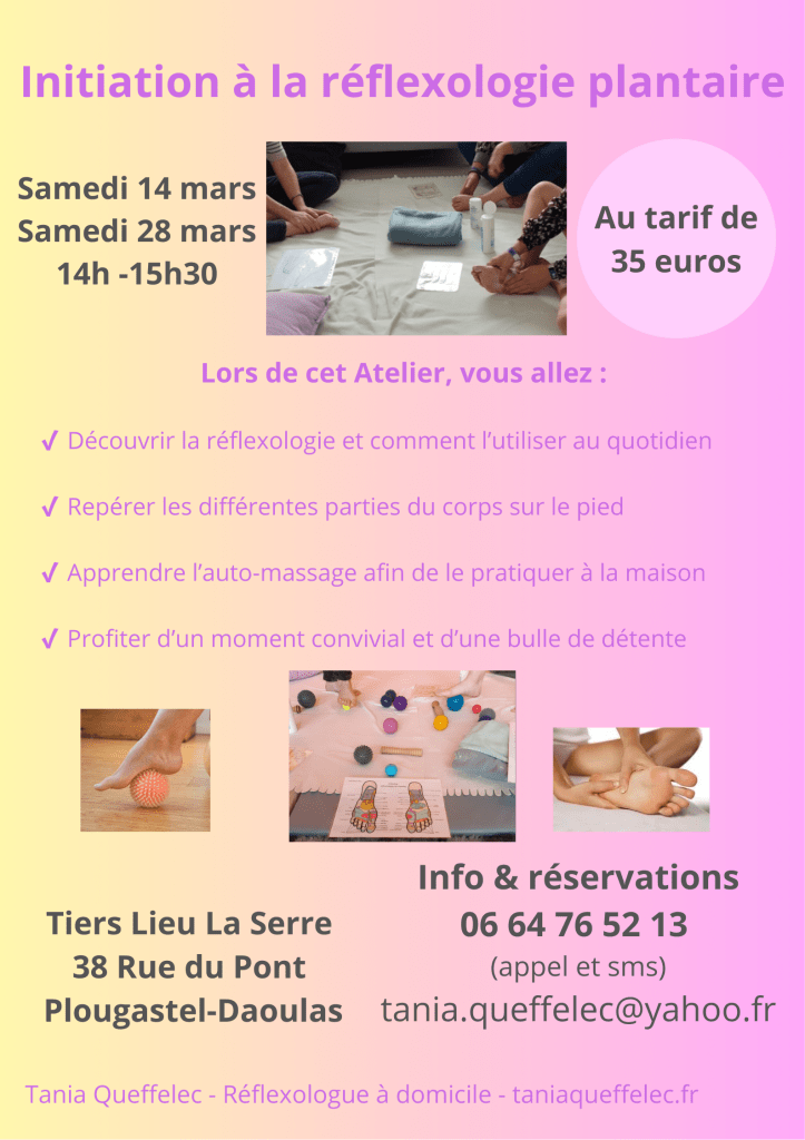 L’objectif de cet atelier est d’apprendre les bases de la réflexologie :