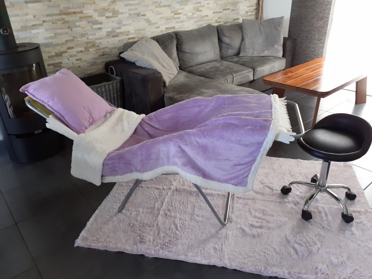 Vous n’avez aucun matériel à fournir. J’ai seulement besoin d’un espace de 3m2 environ pour installer le transat de réflexologie.