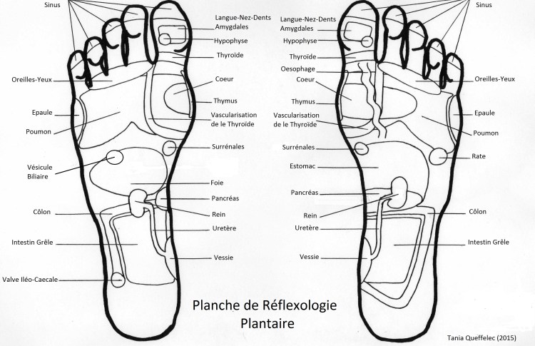 Ces zones réflexes se situe sous la plante des pieds mais aussi sur le dessus du pieds, les côtés, la cheville.